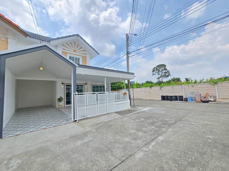 ทาวน์เฮาส์ 2 ชั้น หลังมุม ถนนเมนโครงการ ด้านข้างบ้านเป็นแนวกำแพง ทำเลถนนเมนจอดรถสะดวกมาก