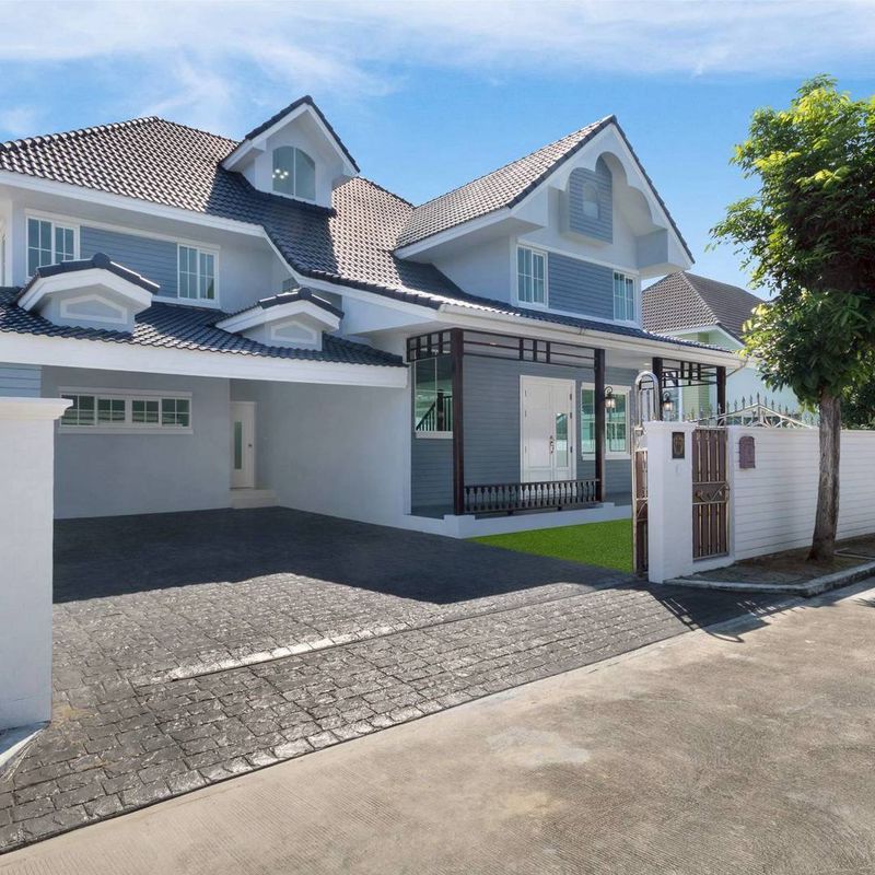 บ้านเดี่ยว 2 ชั้น ขนาดใหญ่ มีพื้นที่ถึง 110 ตารางวา ตกแต่งแต่งสไตล์อังกฤษ อยู่ถนนเมนโครงการ ถนนหน้าบ้านกว้าง